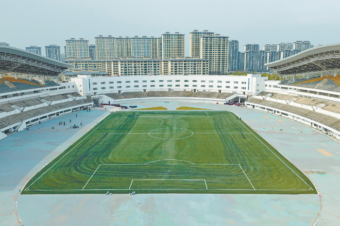 市体育中心体育场焕然一新。